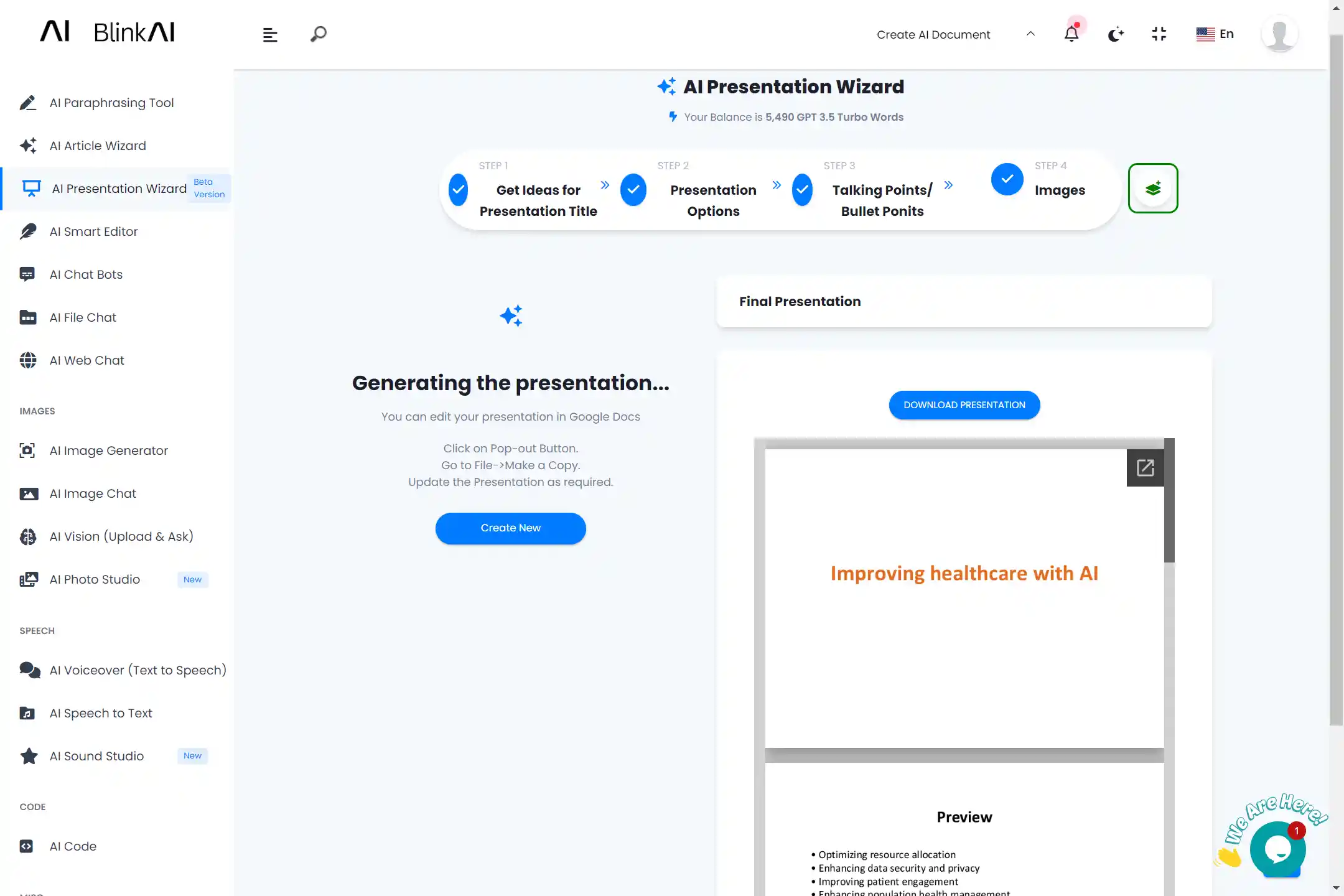 Generate AI Text, Images, Audio, Videos & Code with Blink AI