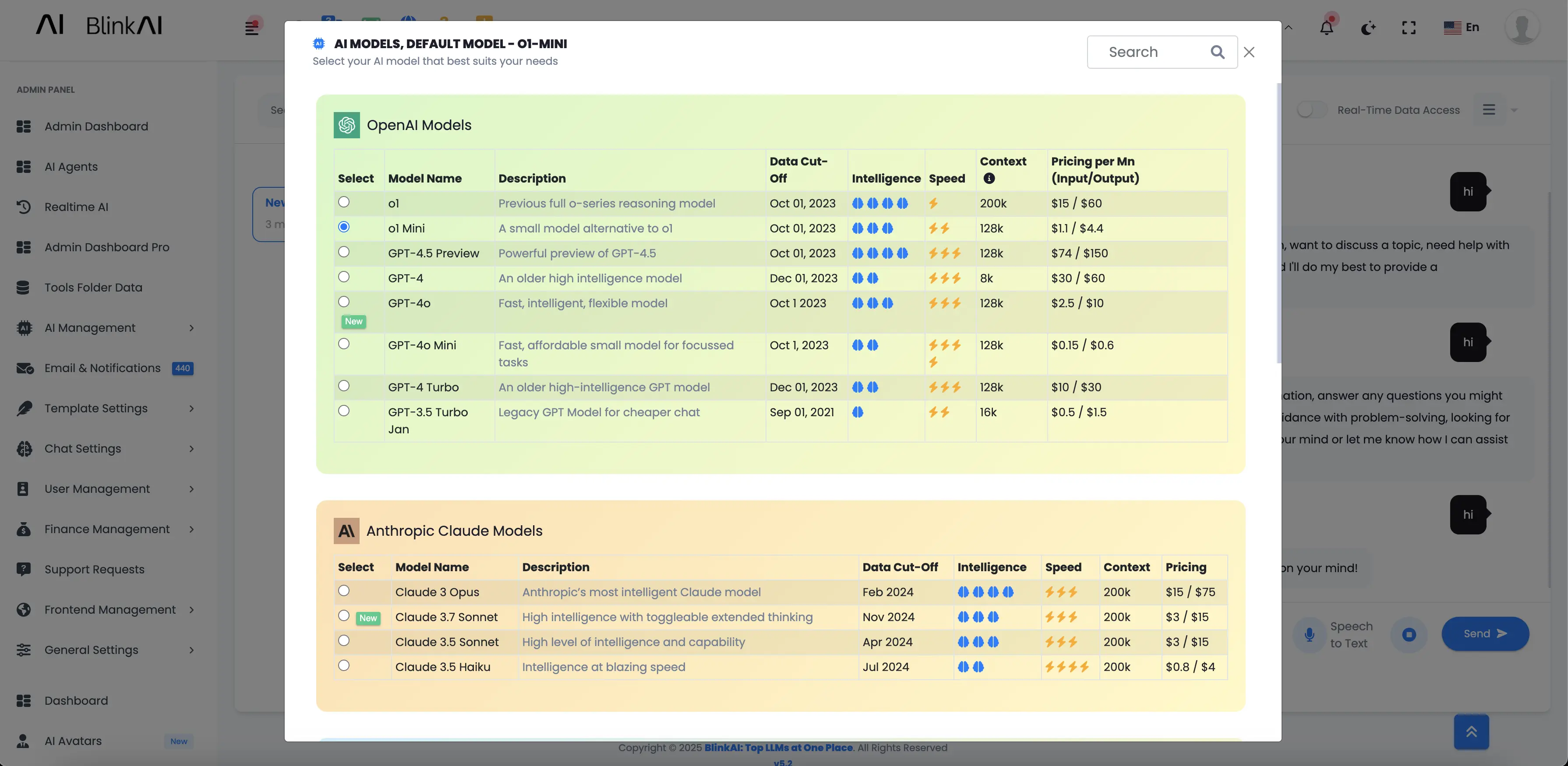 BlinkAI is your all-in-one AI platform to generate text, images, code, and voice using ChatGPT, Gemini, Claude, Grok & Deepseek LLM.