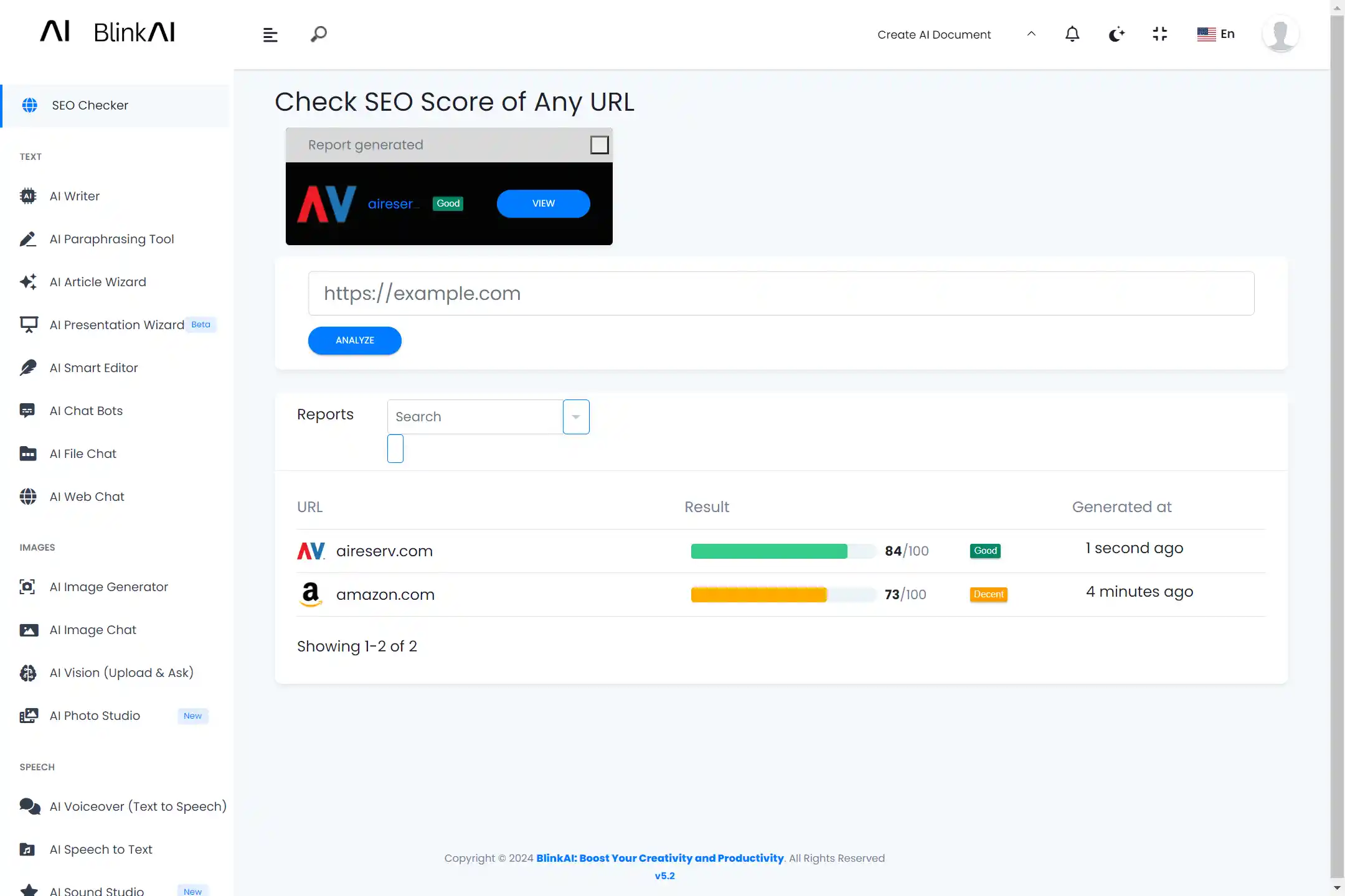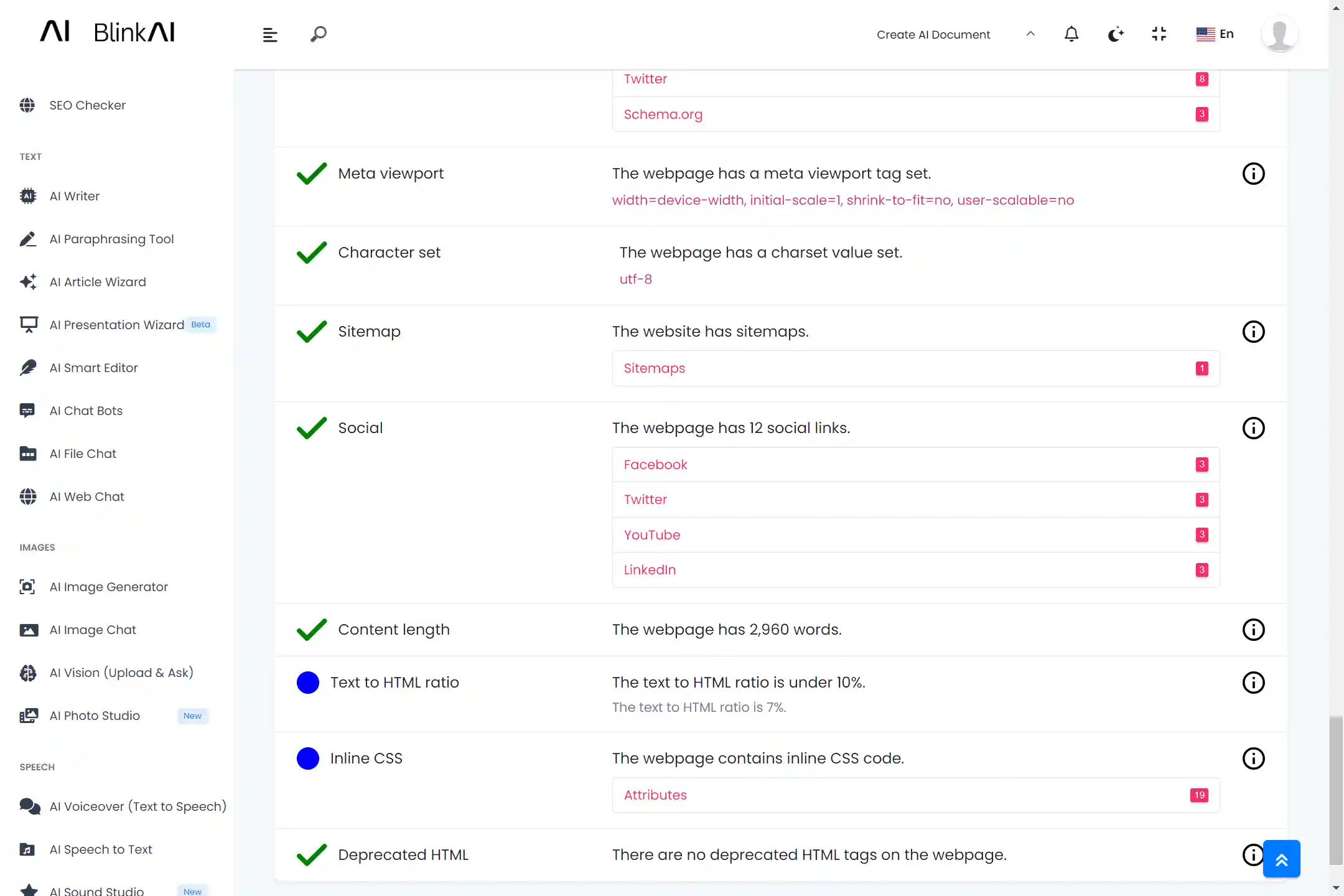 Explore the power of SEO Checker by Blink AI to improve your search ranking.
